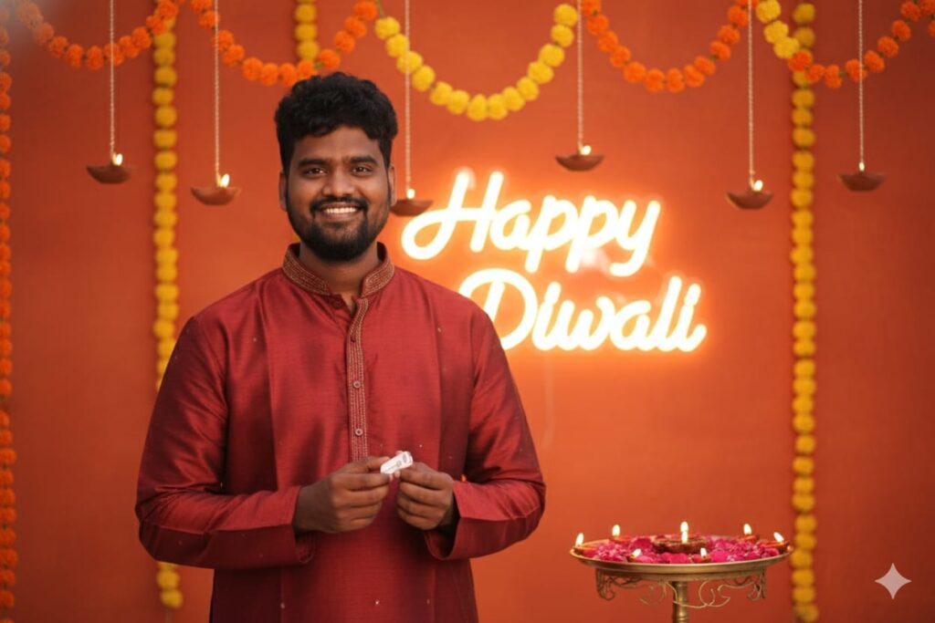 The overall mood should represent Diwali celebration warmth and elegance.
